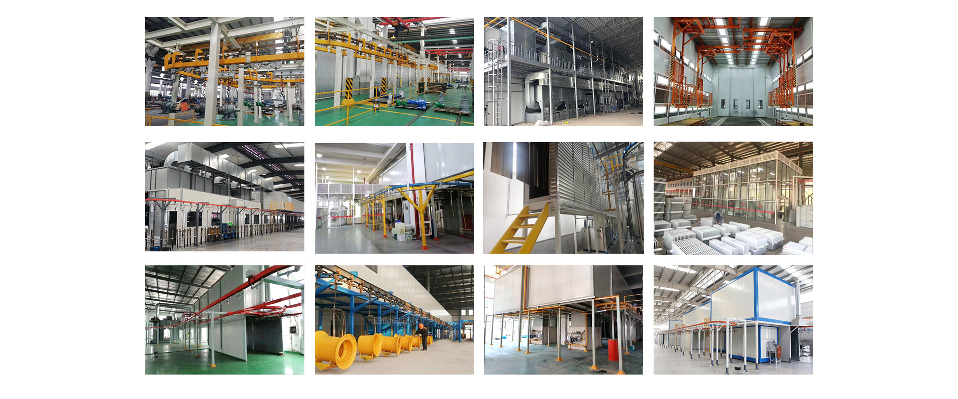 ? ??涂裝設備生產線廠家主要產品的有:噴涂設備流水線、機械臂噴涂設備、靜電粉未、噴塑設備、浸塑設備、電泳涂裝流水線、自動升降機、多軸噴涂往復機、大旋風快速換色粉房、粉末回收設備、多功能噴粉室、大型噴漆室、伸縮噴漆室、噴淋前處理設備、燃氣加熱系統、電加熱烤箱烘干系統、固化烘道、積放涂裝線、懸掛輸送系統、地軌輸送;等多種非標定制設備。